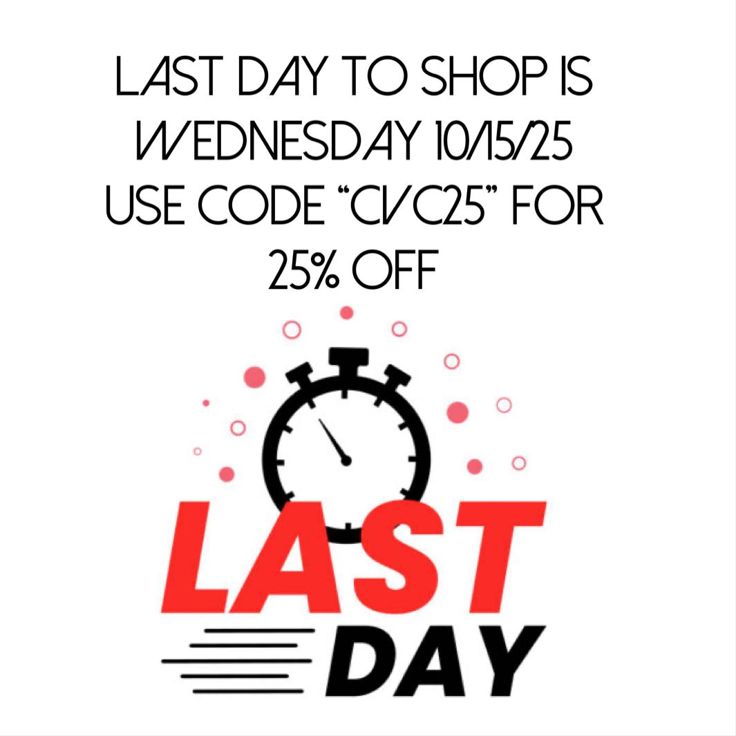 Last day for the year to shop our Website is Wednesday 10/15/25. Use code -CVC25- at checkout for 25% off all items!!!